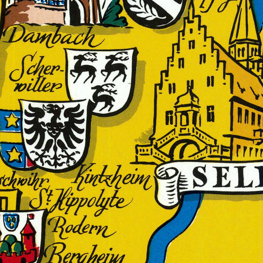 Old pirctorial map of Alsace wine region, 1950