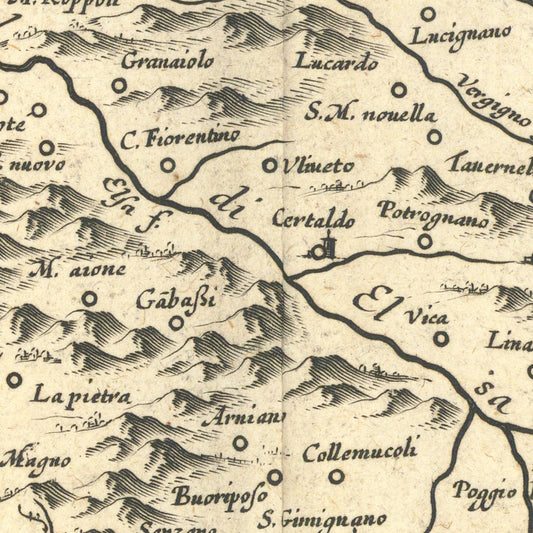 Ancient map of Tuscany, Dominio Fiorentino, 1640