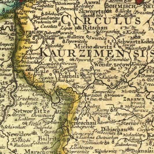 Ancient map of the Kingdom of Bohemia, 1740