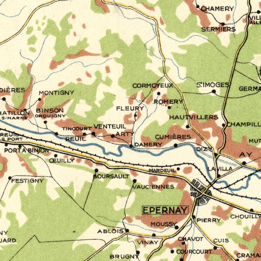 Vintage Montagne de Reims, Champagne, wine map, 1944