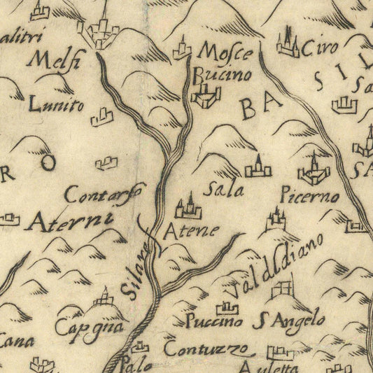 Ancient map of Pozzuoli, 1586