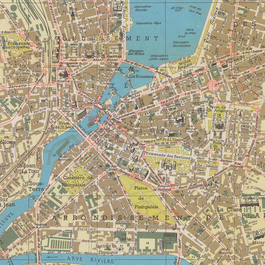 Old city map of Geneva, 1957