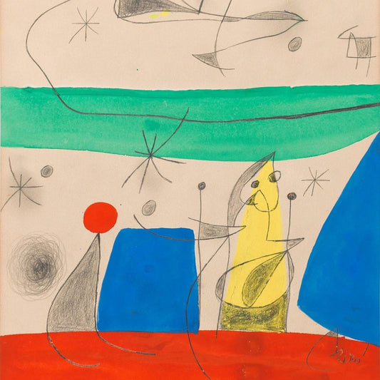 Joan Miró, Woman and bird in a nocturnal landscape, 1976
