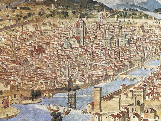 Ancient bird's eye view of Florence, Tuscany, Italy, 1490, (canvas print, 39 cm x 88 cm)