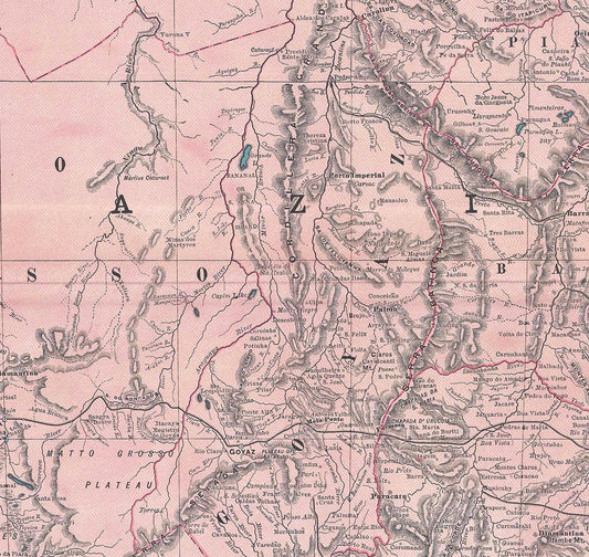 Antique map of Brazil and Guyana, 1892, (fine art photo paper print, 41 cm x 55 cm)