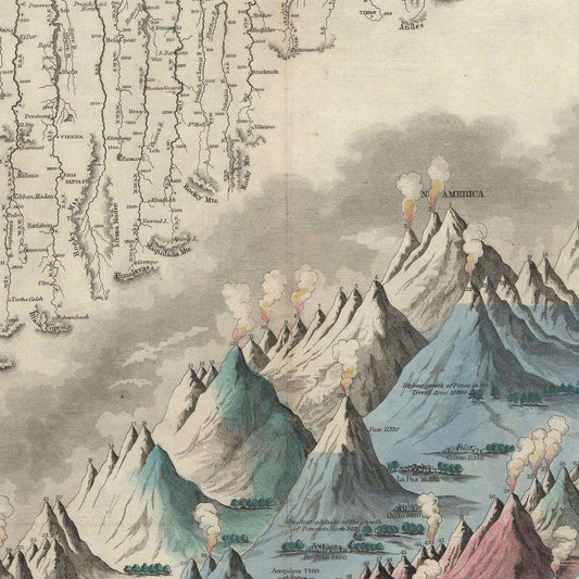 Old chart of the World's mountains and rivers, 1852, (canvas print, 78 cm x 107 cm)
