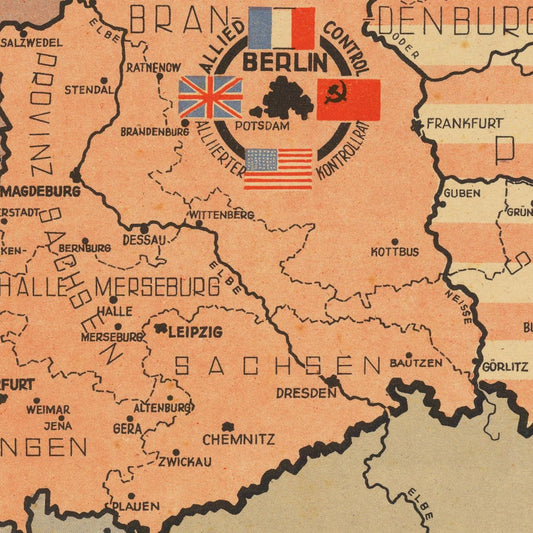 Old map of the occupation areas in Germany, 1945, (matte photo paper print, 70 cm x 100 cm)