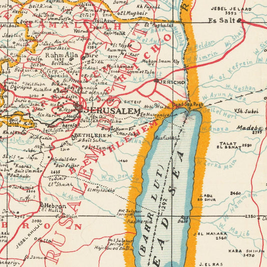 Old map of Palestine, 1942, (fine art photo paper print, 102 cm x 73 cm)