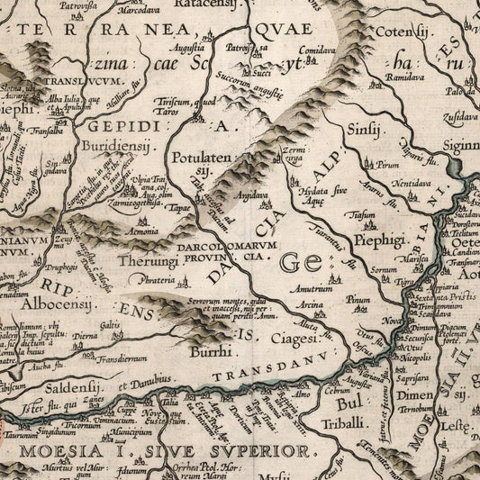 Ancient very rare map of Dacia, Moesia, 1595, (fine art photo paper print, 40 cm x 50 cm)
