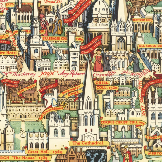 Old pictorial map of Oxford, 1948, (fine art photo paper print, 58 cm x 73 cm)
