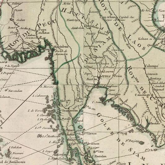 Antique map of East Indies,Singapore, Thailand, Borneo, Malaysia, 1855