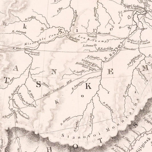 Antique map of Eastern Siberia, Kamchatka, Yakutia, Chukotka, Khabarovsk, Russia, 1848