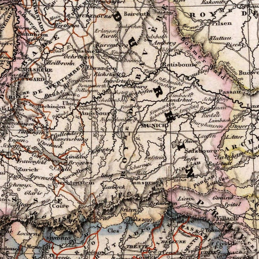 Antique map of France, 1850