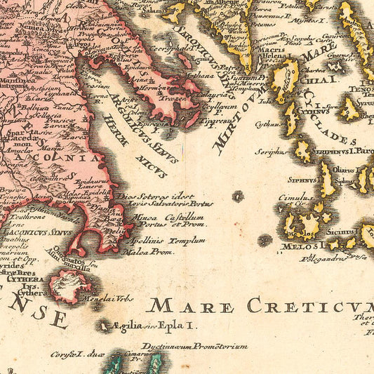 Antique map of Greece, 1720, (fine art photo print, 98 cm x 131 cm)