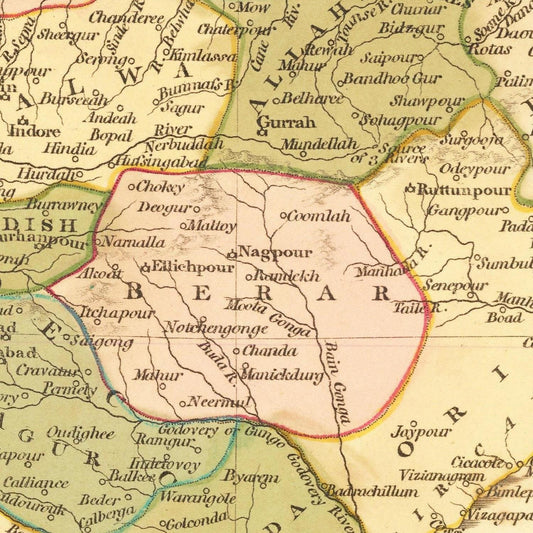 Antique map of Hindoostan, India, 1806