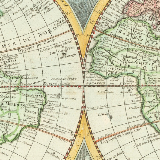 Antique New World Map with the representation of the two Celestial Emispheres, the Discs of the Sun, and of the Moon, 1772