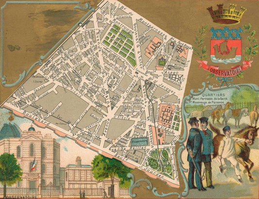 Antique map set of 6, 8 or 12 prints of Paris arrondissements, 1860