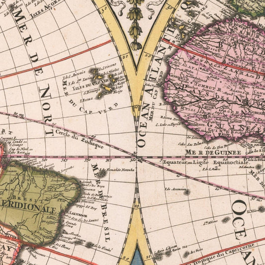 Antique World Map or General Description of the Terrestrial and Aquatic Globe, 1740