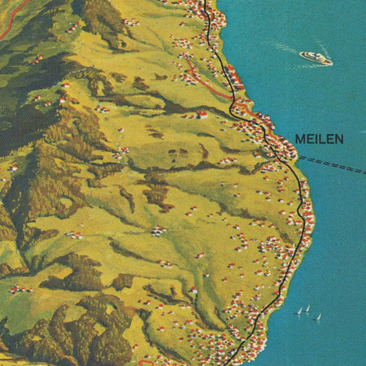 Old bird's eye view of Zurich and Lake Zurich, Switzerland, 1939