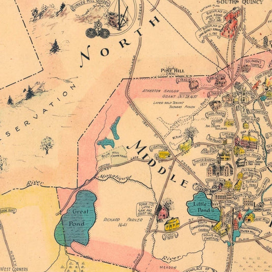 Old pictorial map of Braintree and Quincy, Massachusetts, 1940