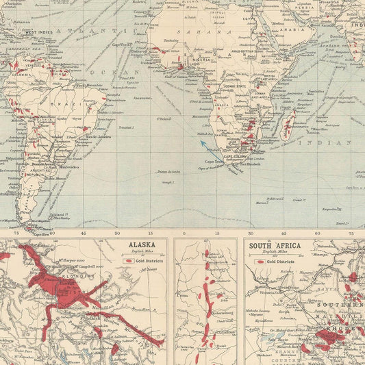 Old map of gold mining coutries, 1906