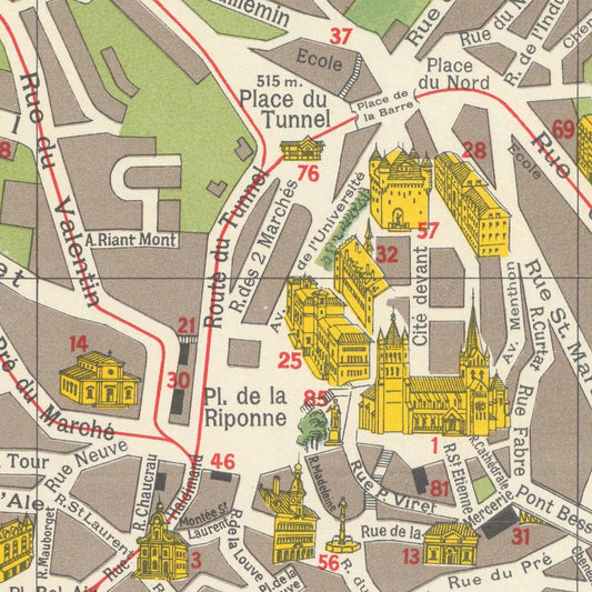 Old tourist map of Lausanne, Switzerland, 1926