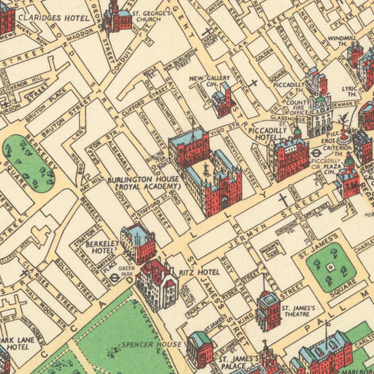 Old tourist map of London, 1955