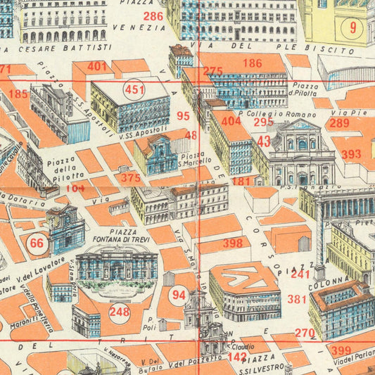 Old panoramic map of Rome, 1960