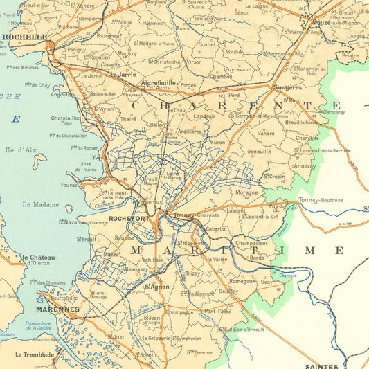 Old wine map of Cognac region, Les Eaux-de-vie de France, 1947