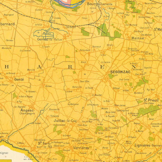 Old wine map of Cognac region, Champagnebois, Charente, 1947