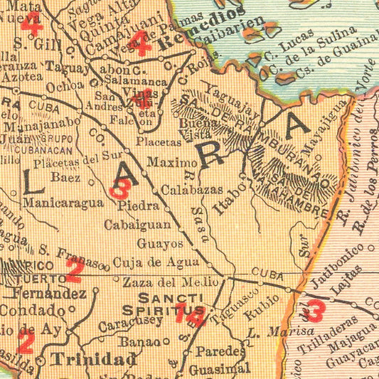 Old map of Cuba, (inset maps of ports and harbors of Havana, Matanzas, Cardenas, Santa clara, Cienfuegos and Santiago de Cuba), 1898