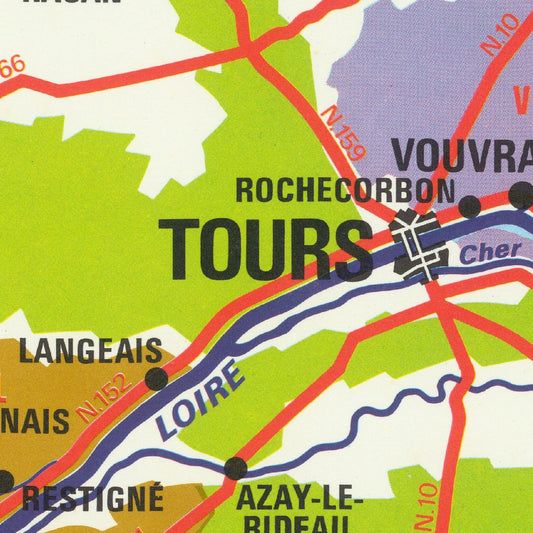 Old wine map of the Loire Valley, Les Vignobles De France, 1965