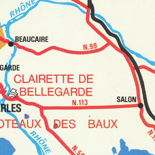 Old wine map of the Cote du Rhone, Les Vignobles De France, 1965