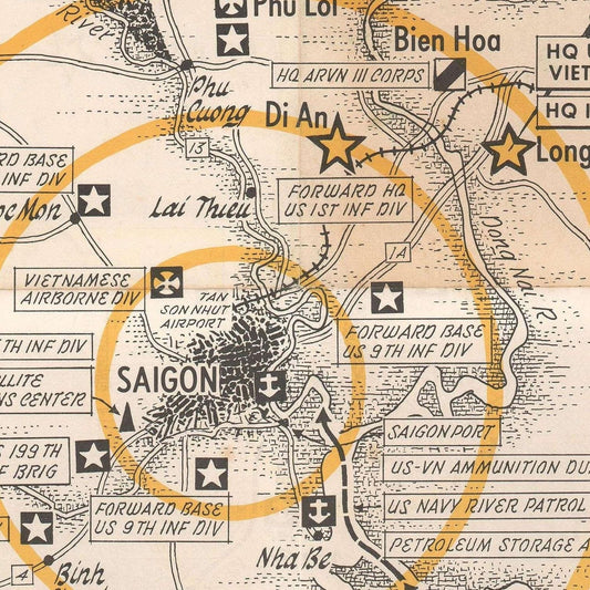 Old map of vicinity of Saigon during the Vietnam war, 1968