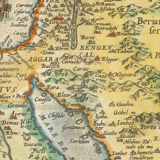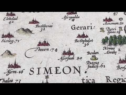Ancient map of the tribe of Simeon, Israel, south of Canaan, 1590
