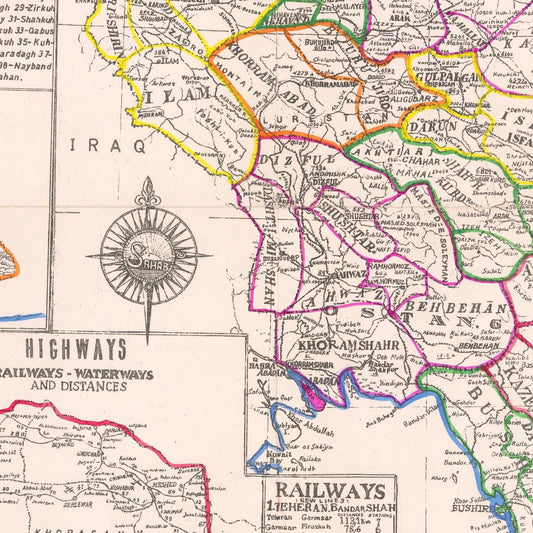 Old pictorial map of Arabian Peninsula, Persia and India, 1950
