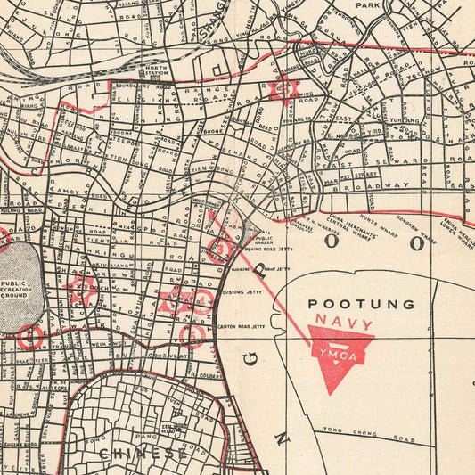 Old city plan of Shanghai, China, 1938