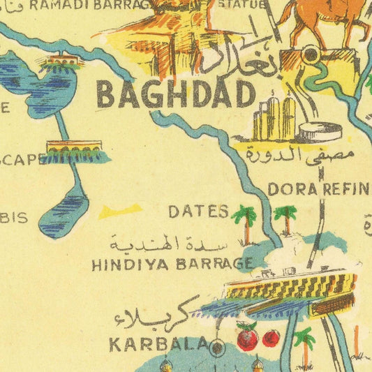 Old pictorial map of Irak, 1956
