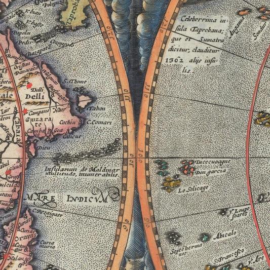 Ancient map of the World, Typus Orbis Terrarum, 1595 (2)