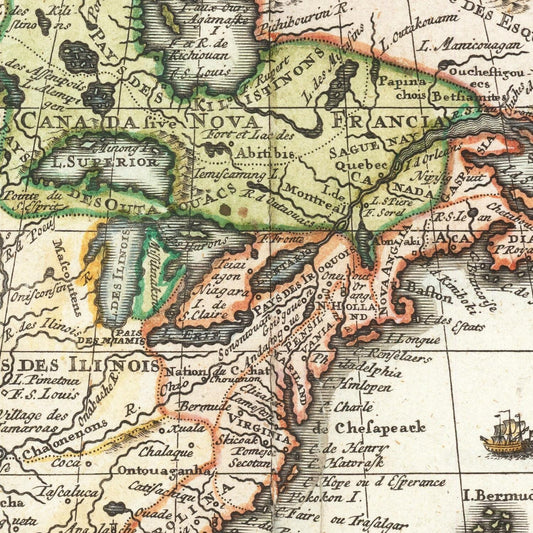 Antique map of America Septentrionalis, Halifax inset, 1725