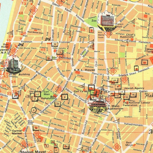 Old city plan of Tel Aviv, Israel, 1974
