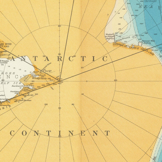 Old map of Antarctic subsurface topography, 1929