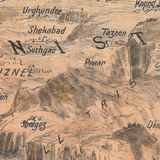 Antique bird's eye view of Afghanistan and Central Asia, 1885