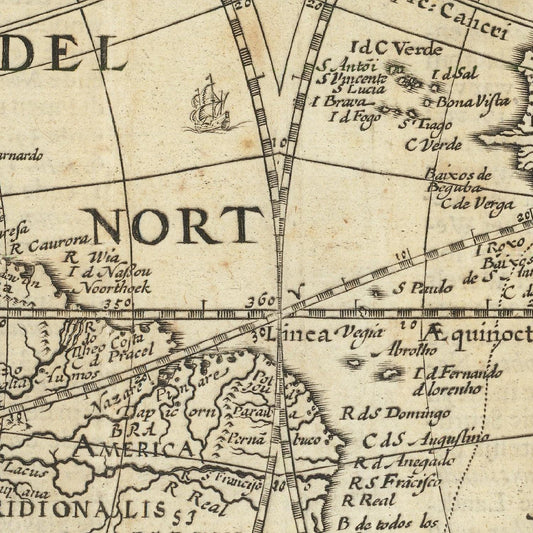 Ancient map of the World, 1657, uncoloured
