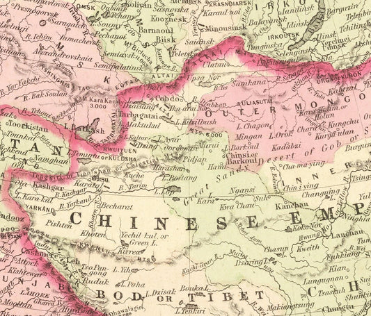 Antique Johnson's map of Asia, 1861