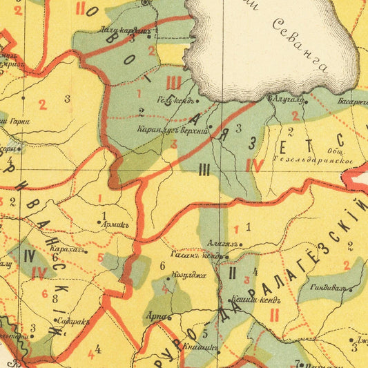 Antique ethnographic map of Armenia, Erivan Governorate, 1895