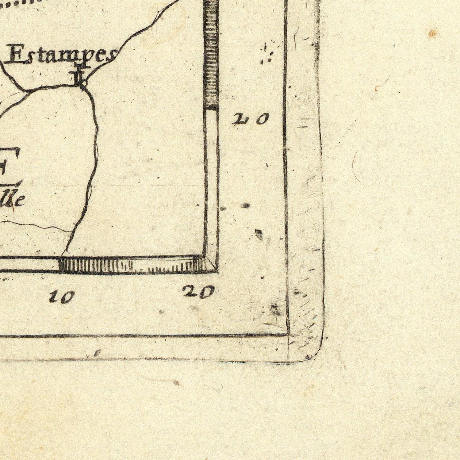 Coronelli’s depiction of Normandy extends from the English Channel to the valleys of the Seine, encompassing cities such as Rouen, Caen, Bayeux, Avranches, and Cherbourg. The engraving’s clarity and accuracy reflect his mastery of geographic representation, while the inclusion of topographical features, rivers, forests, and coastal details demonstrates his commitment to both beauty and functionality.