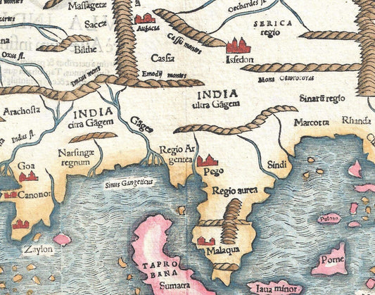 Ancient map of Arabia based on Ptolemy, 1584, Asiae VI Tabula