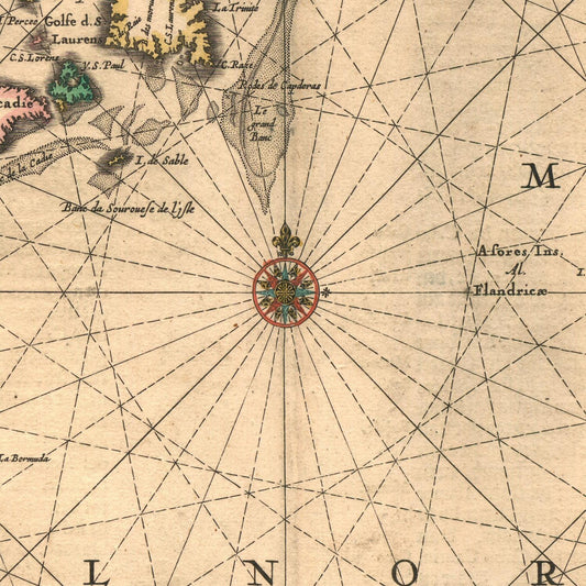 Ancient map of Atlantic Ocean, Mar del Nort, 1661