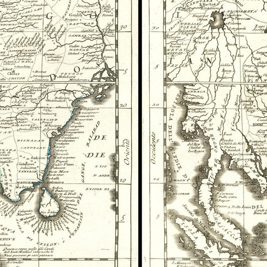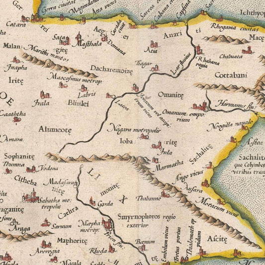 Ancient map of Arabian peninsula, Red Sea, Persian Gulf, Indian Ocean, 1596